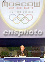 圖:薩馬蘭奇主持國(guó)際奧委會(huì)112次會(huì)議 2001年07月13日 19:35 ![]() 7月13日,國(guó)際奧委會(huì)112次會(huì)議在莫斯科世界貿(mào)易中心舉行會(huì)議,表決2008年奧運(yùn)會(huì)舉辦城市。薩馬蘭奇主持會(huì)議。中新社記者 王瑤 攝