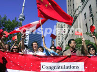 圖:多倫多華人歡慶北京申奧成功 2001年07月14日 07:19 ![]() 七月十三日,北京申奧成功,多倫多華人華僑在聯(lián)合火車站前街舉辦慶;顒。中新社記者 徐德金 攝