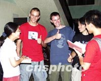 組圖:學(xué)生歡慶申奧成功 2001年07月14日 07:21 ![]() 十三日晚,北京申奧成功,北京清華大學(xué)來自澳大利亞的兩位留學(xué)生接受記者采訪時(shí)表示,為北京感到驕傲。中新社記者 張勤 攝 ![]() 北京大學(xué)幾千名師生十三日晚聚集在校園里,慶祝北京申奧成功。中新社圖 李剛 攝