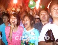 組圖:沸騰的北京 沸騰的莫斯科 2001年07月14日 07:35 ![]() 中國僑界十三日在北京華僑飯店歡慶北京申辦2008年奧運(yùn)成功,圖為國務(wù)院僑辦、僑聯(lián)領(lǐng)導(dǎo)與華人華僑熱烈祝賀的場(chǎng)面。中新社記者 王麗南 攝 ![]() 北京申奧成功,數(shù)萬中國人聚集天安門廣場(chǎng)呼喊、歡騰,表達(dá)內(nèi)心的喜悅。中新社記者 王麗南 攝