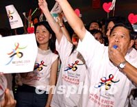 圖文:“北京贏了”香港市民興奮心情未減 2001年07月14日 19:07 ![]() 7曰13日晚,香港各界聚集在香港九龍公園熱烈慶祝北京申奧成功。中新社傳真 任晨鳴 攝 ![]() 香港民眾7月13日晚在香港九龍公園熱烈慶祝北京申奧成功。中新社傳真 任晨鳴 攝