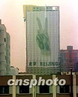 圖:“北京勝利了”巨幅招貼畫出現(xiàn)在北京 2001年07月16日 18:33 ![]() 北京朝陽區(qū)一家商物大樓上,掛起了一幅巨大的“北京申奧勝利”招貼畫,格外醒目。中新社記者 趙振清 攝