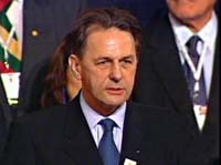 組圖:羅格當(dāng)選為新一屆奧委會主席 2001年07月16日 21:49 ![]() 七月十六日,比利時(shí)人羅格在國際奧委會第112次會議上當(dāng)選為新一屆奧委會主席,從而成為奧委會一百零七年歷史中的第八位主席。 ![]() 國際奧委會前主席薩馬蘭奇先生,在這一職位上工作了二十一個春秋。七月十六日,比利時(shí)人羅格在莫斯科舉行的國際奧委會第112次會議上,當(dāng)選為新一屆國際奧委會主席,至此實(shí)現(xiàn)了薩馬蘭奇先生的一個心愿。