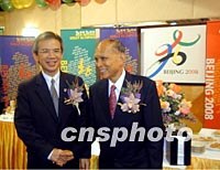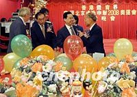 組圖:香港體育界慶祝北京申奧成功 2001年07月18日 10:56 ![]() 香港體育界17日晚舉行盛大聯(lián)歡會(huì),熱烈慶祝北京申辦2008年奧運(yùn)會(huì)成功,全國(guó)政協(xié)副主席霍英東與民政事務(wù)局長(zhǎng)林煥光出席晚會(huì),共慶中國(guó)體壇盛事。中新社傳真 洪少葵 攝 ![]() 全國(guó)政協(xié)副主席霍英東、中聯(lián)辦副主任王鳳超、康樂(lè)及文化事務(wù)署長(zhǎng)梁世華等出席香港體育界17日晚舉行的盛大聯(lián)歡會(huì),熱烈慶祝北京申辦2008年奧運(yùn)會(huì)成功。中新社傳真 洪少葵 攝