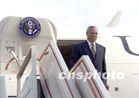 組圖:美國國務(wù)卿鮑威爾抵京開始訪問 2001年07月28日 10:11 ![]() 美國國務(wù)卿鮑威爾二十八日上午乘專機抵達北京首都國際機場。中新社記者 毛建軍 攝 ![]() 美國國務(wù)卿鮑威爾二十八日上午乘專機抵達北京,開始為期兩天的訪問。中新社記者 滿會喬 攝