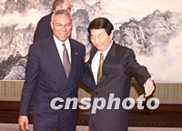 組圖:朱镕基會見美國國務(wù)卿鮑威爾 2001年07月28日 17:40 ![]() 中國國務(wù)院總理朱镕基二十八日在北京中南海會見來訪的美國國務(wù)卿鮑威爾。中新社記者 毛建軍 攝 ![]() 中國國務(wù)院總理朱镕基二十八日在北京中南海會見美國國務(wù)卿鮑威爾。中新社記者 毛建軍 攝