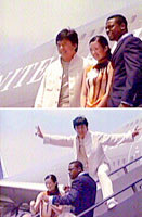 圖:成龍新作《尖峰時刻2》舉行首映式 2001年07月31日 15:55 ![]() 功夫巨星成龍最新完成的影片《尖峰時刻2》日前在洛杉磯直飛香港的飛機(jī)上進(jìn)行首映,這是近四十年來第一部在空中飛行過程中舉行首映式的影片。圖為成龍、章子怡、克里斯·塔克在舉行首映式的飛機(jī)上。