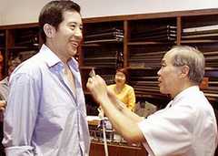 圖文:秦漢打籃球獲得標(biāo)準(zhǔn)模特身材 2001年08月02日 18:11 ![]() 中新網(wǎng)新加坡8月2日消息:“40.5,34.5,40.5。標(biāo)準(zhǔn)的模特兒身材!必(fù)責(zé)量身的裁縫師陸先生這樣稱贊在新加坡訂做西服的臺灣著名演員秦漢。 20年來身材沒有走樣,秦漢歸功于經(jīng)常打籃球。他還和此間聯(lián)合早報記者開玩笑說:“經(jīng)常和像你這樣的年輕人一起打球!彼踔烈膊恢t虛地說,記者應(yīng)該打不過他。 秦漢主演的新劇《勝券在握》本月8日將在新加坡開拍,該劇為秦漢訂做了十件西裝大衣。 秦漢則會在獅城逗留四個多月,以拍攝這部40集的重頭劇。 他在劇中和米雪扮演夫妻,可是感情出現(xiàn)裂痕,太太離開他后,他又和陳潔儀發(fā)展一段忘年之戀。 “我在劇中有很多缺點,喜歡罵人,自命不凡,愛找人麻煩,對人刻薄,但是有幽默感,”秦漢簡直是在“數(shù)落”自己的角色!拔已萏嗪萌说慕巧寺! |