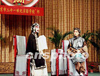十二歲的沙霏(左)和她的同學九日晚在北京長安大戲院表演京劇《六月雪》片段,沙霏在劇中的精彩表演剛為她贏得北京第四屆少兒京昆大賽一等獎。目前,中國國內(nèi)越來越多的少兒開始喜歡國粹京劇。中新社圖 武仲林 攝