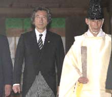 圖文:小泉純一郎參拜靖國(guó)神社招致抗議 2001年08月13日 18:06 ![]() 小泉不顧反對(duì)參拜靖國(guó)神社 ![]() 在二戰(zhàn)中韓國(guó)死難者家屬抗議小泉參拜 中新網(wǎng)北京8月13日消息:日本首相小泉純一郎今天下午不顧中國(guó)和韓國(guó)等亞洲鄰國(guó)的強(qiáng)烈反對(duì)參拜了供奉著十四名甲級(jí)戰(zhàn)犯的靖國(guó)神社。 參拜完畢后,當(dāng)被問(wèn)及在任職期間他是以個(gè)人還是首相身份參拜靖國(guó)神社時(shí),他回答說(shuō):“我不想特別說(shuō)明這次是私人還是官方的參拜! 小泉在日本時(shí)間下午四點(diǎn)半(北京時(shí)間三點(diǎn)半)參拜了靖國(guó)神社后回答了記者提問(wèn)。 一批韓國(guó)人今天在首相官邸舉行靜坐,以抗議小泉純一郎參拜靖國(guó)神社。這個(gè)九人組成的抗議團(tuán)體代表在二戰(zhàn)中日軍中喪生的軍人和平民的家屬。他們自從上周六開始就號(hào)召舉行靜坐、絕食和其它抗議活動(dòng)。 太平洋戰(zhàn)爭(zhēng)喪親聯(lián)合會(huì)舉行了抗議活動(dòng)反對(duì)小泉參拜靖國(guó)神社。 該聯(lián)合會(huì)一名成員說(shuō),此次參拜會(huì)激怒亞洲人民。他說(shuō):“我相信沒有任何一個(gè)亞洲人能接受首相參拜靖國(guó)神社,即使他改變了參拜的日期。” |