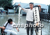 圖:南京市民強烈抗議小泉參拜靖國神社 2001年08月16日 17:03 ![]() 日本首相小泉純一郎參拜靖國神社,引起了中國人民的極大憤慨。南京市民以集會、簽名等各種形式表示強烈抗議。南京氣象學院71歲的傅逸賢副教授日前在南京大屠殺遇難同胞紀念館門前焚燒日本戰(zhàn)犯的模擬牌位。中新社圖 祁恩芝 攝