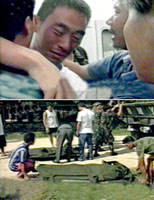 圖文:脫離虎口的中國(guó)人質(zhì)王勝利親述生死瞬間 2001年08月22日 09:25 ![]() 中新網(wǎng)香港8月22日消息:據(jù)香港文匯報(bào)報(bào)道,21日下午兩點(diǎn)過(guò)后,脫離虎口的王勝利在中國(guó)駐菲律賓大使王春貴和武官?gòu)堄窈哟笮5呐阃拢俗逯腥A人民共和國(guó)國(guó)旗的黑色轎車緩緩駛進(jìn)中國(guó)大使館,受到等候已久佟曉玲參贊等使館館員的熱烈歡迎。 踏進(jìn)使館等于回到了自己的家里。在使館休息廳里,菲律賓方面的醫(yī)生為王勝利檢查了身體。除了腳踝在逃跑時(shí)扭傷有些疼痛外,王勝利的身體和精神狀態(tài)都很好。由于飛機(jī)上沒有提供午餐,使館早已為王勝利準(zhǔn)備好了午餐。經(jīng)過(guò)一個(gè)多星期的驚嚇和磨難后,王勝利終于在使館狼吞虎咽起來(lái)。 王勝利以及張忠義和薛興在當(dāng)?shù)匾幻樟值娜A人陪同下,于八月十二日前去營(yíng)救先前被綁架的張忠強(qiáng)。但善良的他們被不守信用的綁匪扣押。綁匪打一槍換一個(gè)地方,他們每隔二三天搬一個(gè)地方。在變換地方的行軍中,綁匪用手鎗威脅他們老實(shí)一些。但在被綁的其它時(shí)間,綁匪對(duì)中國(guó)人質(zhì)態(tài)度還不錯(cuò),有飯讓王勝利等人先吃,也不打罵他們,盡管領(lǐng)頭的綁匪有時(shí)對(duì)他們耍耍威風(fēng)。 被綁的最初兩天,王勝利等人情緒非常低落,整天愁眉苦臉,唉聲嘆氣。每當(dāng)想起只有九歲的女兒時(shí),王勝利的腿都發(fā)抖。幾天后,他們開始接受并面對(duì)殘酷的現(xiàn)實(shí),因?yàn)橄氲迷俣嘁彩遣还苡谩?/p> 十八日上午,他們的駐地突然響起密集的槍聲,綁匪和王勝利等中國(guó)人質(zhì)嚇了一跳。原來(lái)四個(gè)班的政府軍接到線民的舉報(bào)后,前來(lái)圍剿綁匪和營(yíng)救中國(guó)人質(zhì)。政府軍同大約六十多名穆斯林綁匪打了起來(lái)。 中國(guó)人質(zhì)本來(lái)商定好風(fēng)雨同舟,要逃大家一起逃,而且往一個(gè)方向逃。可是突如其來(lái)的槍聲響起后,大家本能地乘機(jī)各奔東西南北。王勝利往山上的樹林里逃,張忠強(qiáng)和薛興往橡膠林里逃。王勝利在國(guó)內(nèi)當(dāng)過(guò)兵,經(jīng)驗(yàn)比較豐富。他逃出一段距離后,馬上一個(gè)魚躍跳進(jìn)路邊的一個(gè)土坑,躲過(guò)了來(lái)往的子彈。在逃跑中,他把腳扭傷了,但幸運(yùn)地被菲律賓軍方救出。 張忠強(qiáng)是于今年六月二十日在菲律賓南部北哥塔巴托省被綁架的。他和薛興逃出很遠(yuǎn)一段距離后,被子彈擊中,當(dāng)場(chǎng)倒在血泊中。由于綁匪熟悉當(dāng)?shù)氐匦,他們把張忠?qiáng)的弟弟張忠義和姓林的華人作為盾牌邊戰(zhàn)邊逃。張忠義目前下落不明,但是肯定在綁匪手里。綁匪目前要求跟張忠義家屬進(jìn)行談判,并呼吁政府軍減少對(duì)他們的軍事壓力。 穿著T恤衫的王勝利看上去非常消瘦,皮膚曬得黝黑。記者伸手歡迎他回到使館。“你今年多大年紀(jì)?”我問王勝利。“三十三歲。”“老家在什么地方?”“浙江!薄澳悻F(xiàn)在最想做的是什么事情?”記者又問了這樣一個(gè)問題。王勝利除了對(duì)同伴的遇害感到傷心外,直言說(shuō):“回國(guó)看我女兒。我希望能帶她到杭州游玩!(朱幸福) |