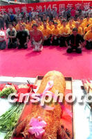 中新社佛山八月二十七日電(記者辛述之)今天是中國武林奇人黃飛鴻一百四十五周年誕辰,來自美國東、西部海外黃飛鴻門人尋根團一行近百人,上午來到廣東佛山黃飛鴻紀(jì)念館,舉行拜師盛會并進行武術(shù)表演。 晚清時期一代武術(shù)宗師黃飛鴻,一八五六年八月二十七日誕生于佛山。黃飛鴻武藝超凡,其富有傳奇色彩的故事,曾被拍成百余部電影在海外廣為流傳,其英名不但在國人心里扎根,而且還受到許多外國人的仰慕。 黃飛鴻門下弟子眾多,遍布粵港澳、東南亞乃至美加、歐洲等地。在人們心中,他已成為一個行俠仗義、扶危濟困,具有中華傳統(tǒng)美德的藝術(shù)形象而家喻戶曉。 今天,適逢座落于佛山祖廟的黃飛鴻紀(jì)念館全面開放,粵港澳武術(shù)界有關(guān)人員結(jié)伴前來,參加紀(jì)念盛會。上午九時,參加過國慶五十周年慶典的二十頭醒獅起舞迎賓,黃飛鴻的傳人、著名武術(shù)家趙志凌、余志偉等為黃飛鴻紀(jì)念館醒獅點睛,并帶領(lǐng)來自美國東、西部的近百名黃飛鴻門人,按照傳統(tǒng)武林習(xí)俗拜祭祖師黃飛鴻。 隨后,進行了大型群鼓表演、舞龍表演和舞獅表演。余志偉、趙志凌及其洋弟子相繼表演了精彩的黃飛鴻拳術(shù),其不凡的身手和高超的武藝,博得觀眾高聲喝彩和陣陣掌聲。 據(jù)了解,黃飛鴻紀(jì)念館今后將每年舉辦世界黃飛鴻門人大聯(lián)誼,還將舉辦國際洪拳大賽,黃飛鴻、霍元甲南北大俠國際武術(shù)邀請賽等活動。(完) |