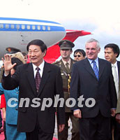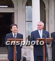 ![]() 正在愛爾蘭訪問的中國總理朱镕基,九月三日在下榻的國賓館與愛總理埃亨舉行會談后,共同會見記者并回答提問。中新社記者 孟慶雷 攝