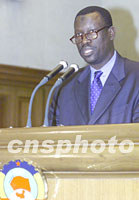 ![]() 聯(lián)合國環(huán)境規(guī)劃署官員巴克利·肯特四日在北京出席“21世紀論壇-綠色與環(huán)保2001年會議”,并作演講。中新社記者 滿會喬 攝 ![]() “21世紀論壇-綠色與環(huán)保2001年會議”四日在北京開幕,全國政協(xié)副主席葉選平(左一)、宋。ㄗ蠖、中國林業(yè)科學研究院院長江澤慧(右一)等出席開幕式。中新社記者 滿會喬 攝