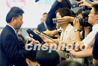 圖:金立群在第八屆APEC財(cái)長會(huì)議接受采訪 2001年09月06日 16:31 ![]() 第八屆APEC財(cái)政及央行副手會(huì)六日在中國江蘇省蘇州市舉行,中國財(cái)政部副部長、本屆會(huì)議主席金立群引起了許多記者的興趣,在會(huì)前被包圍采訪。中新社記者 李剛 攝 |