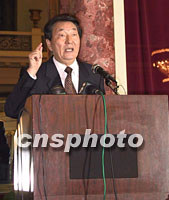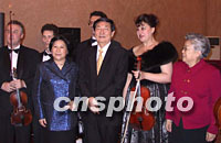 ![]() 正在俄羅斯訪問的中國總理朱镕基和夫人勞安,九月九日晚在中國駐俄羅斯大使館與俄羅斯演員合影留念。中新社記者 孟慶雷 攝