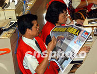 ![]() 9月12日上午,香港聯(lián)交所照常開(kāi)市。中新社圖 任晨鳴 攝 ![]() 9曰12日上午,香港聯(lián)交所的交易員閱讀關(guān)于美國(guó)局勢(shì)的報(bào)紙。中新社圖 任晨鳴 攝