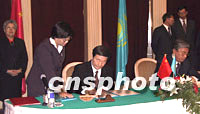 組圖:朱镕基訪問哈薩克斯坦 2001年09月12日 22:34 ![]() 正在哈薩克斯坦訪問的中國總理朱镕基九月十二日在阿斯塔納與哈總理托卡耶夫會(huì)見記者時(shí)表示,世界各國應(yīng)共同努力反對(duì)和制止一切恐怖主義和暴力活動(dòng)。中新社記者 孟慶雷 攝 ![]() 首次訪問哈薩克斯坦共和國的中國總理朱镕基,九月十二日在哈首都阿斯塔納與哈總理托卡耶夫共同簽署中哈聯(lián)合公報(bào)。中新社記者 孟慶雷 攝