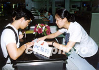 圖:上海浦東國際機(jī)場設(shè)立APEC專柜 2001年09月13日 15:16 ![]() 為做好APEC會(huì)議的服務(wù)工作,上海航空公司在服務(wù)一線的員工們根據(jù)各自工作特點(diǎn),制定了“方便、細(xì)致、快捷、優(yōu)質(zhì)”的服務(wù)項(xiàng)目,讓與會(huì)的中外賓客享受溫馨的服務(wù)。圖為上航在浦東國際機(jī)場設(shè)立APEC值機(jī)專柜。中新社圖 夏本建 攝 |