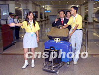 組圖:志愿者迎接即將開幕的華商大會(huì)代表 2001年09月16日 15:50 ![]() 服務(wù)于第六屆世界華商大會(huì)的志愿者十六日在南京機(jī)場迎接參加大會(huì)的來賓,華商會(huì)十七日將在南京拉開帷幕。中新社記者 史利 攝 ![]() 出席第六屆世界華商大會(huì)的國內(nèi)工商界人士十六日陸續(xù)抵達(dá)南京,來自南京各高校的志愿者在機(jī)場熱情接待來賓。中新社記者 史利 攝