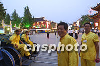 圖:黃包車夫夫子廟迎接華商大會(huì)代表 2001年09月17日 22:42 ![]() 舊式裝扮的黃包車夫十七日晚在南京夫子廟迎候來游覽的第六屆華商大會(huì)代表。中新社記者 李剛 攝 |