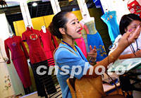 圖:德國華商鐘情中式旗袍 2001年09月19日 11:41 ![]() 來自德國的第六屆華商大會代表在同期舉行的“經(jīng)貿(mào)交流展”上相中了中式改良旗袍,并與大陸的生產(chǎn)廠家洽談。中新社記者 鄭萍萍 攝 |