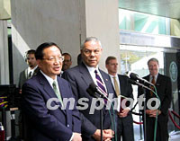 唐家璇外長(zhǎng)與鮑威爾會(huì)談 雙方達(dá)成五方面共識(shí) 2001年09月22日 15:17 ![]() 9月21日中午,中國(guó)外長(zhǎng)唐家璇在美國(guó)國(guó)務(wù)院與鮑威爾國(guó)務(wù)卿舉行會(huì)晤,就中美雙邊關(guān)系和反恐怖領(lǐng)域的合作等議題進(jìn)行廣泛的交流。唐家璇外長(zhǎng)對(duì)媒體記者說(shuō),會(huì)晤是成功的、十分有益的、建設(shè)性的。中新社圖 徐德金 攝 ![]() 九月二十一日中午,中國(guó)外長(zhǎng)唐家璇在美國(guó)國(guó)務(wù)院與鮑威爾國(guó)務(wù)卿舉行會(huì)晤,雙方表示將在反恐怖領(lǐng)域進(jìn)行更好的合作。中新社圖 徐德金 攝