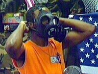圖:紐約人爭購防毒面具以防生化武器襲擊 2001年09月26日 14:35 ![]() 紐約人日前爭購放毒面具,以免受到恐怖主義可能進(jìn)行的生化武器的襲擊。圖為一紐約青年正在選購防毒面具。 |