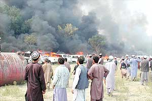 圖文:阿富汗反美大示威中有12名警察受傷 2001年09月27日 11:10 ![]() 示威者圍觀美國(guó)大使館內(nèi)狂燒的車子。路透社 圖 中新網(wǎng)香港9月27日消息:幾千名阿富汗示威者昨天闖入美國(guó)駐阿富汗大使館,放火焚燒遭丟棄的汽車,火勢(shì)波及大使館的外圍建筑,但主樓并未受破壞。 塔利班士兵同大使館內(nèi)外暴亂的示威者發(fā)生沖突,消防員最終把火勢(shì)控制住。喀布爾警察首腦尤努斯說,12名警察在設(shè)法控制暴亂時(shí)受傷。他說:“我們盡力避免這樣的事情發(fā)生,但示威者的人數(shù)使我們不可能成功。他們有幾千人! 38歲的示威者烏拉說,示威的目的是向美國(guó)發(fā)出信號(hào)。“我們干得好!边@名店主說,“美國(guó)要燒掉我們的國(guó)家,所以我們焚燒他們的大使館。” 美國(guó)駐阿富汗大使館自1989年起就無人駐守,只保留了一些阿富汗雇員負(fù)責(zé)維修等有限的工作。據(jù)悉,這次示威是美國(guó)遭襲以來喀布爾發(fā)生的最大規(guī)模反美事件。 |