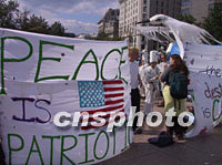 組圖:華盛頓舉行反戰(zhàn)大游行 2001年09月30日 15:39 ![]() 九月二十九日,美國首都華盛頓舉行大規(guī)模的反戰(zhàn)集會和游行,成千上萬反戰(zhàn)人士高呼“不要戰(zhàn)爭,不要種族主義”等口號,沿著賓西法尼亞大道浩浩蕩蕩向國會山方向進發(fā)。中新社記者 徐德金 攝 ![]() 九月二十九日,成千上萬美國反戰(zhàn)人士匯集華盛頓,舉行反戰(zhàn)游行。他們高舉“不要戰(zhàn)爭,不要種族主義”,“戰(zhàn)爭是恐怖”,“停止軍事暴力”等標語牌,高呼口號。中新社記者 徐德金 攝