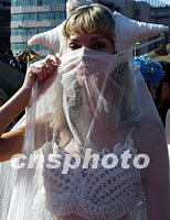![]() 來自俄羅斯的模特,日前在青島舉行的2001中國青島時裝周上進行服裝展示。中新社記者 錢興強 攝