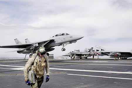 組圖:美國反恐戰(zhàn)爭中的重要武器 2001年10月08日 04:28 ![]() 美軍F/A18大黃蜂戰(zhàn)機是美國反恐戰(zhàn)爭中的重要作戰(zhàn)單位之一 ![]() 美國動用戰(zhàn)斧式巡航導(dǎo)彈攻擊阿富汗的基地 |