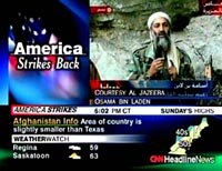 本·拉登發(fā)表錄像講話誓言讓美國不得安寧 2001年10月08日 05:34 ![]() 拉登在講話中發(fā)誓:在巴勒斯坦實(shí)現(xiàn)和平之前,美國人將再也無法過上和平的生活。 ![]() 美軍協(xié)同英軍開始對(duì)阿富汗境內(nèi)恐怖組織訓(xùn)練營以及塔利班政權(quán)的軍事設(shè)施展開軍事打擊。其后不久,卡塔爾一家電視臺(tái)首先播放了本·拉登講話的錄像。拉登說:“我對(duì)真主起誓,除非巴勒斯坦人民能夠享受到和平,否則美國人將永遠(yuǎn)不知和平為何物!