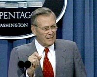 圖:美國防部長說:不能讓塔利班做恐怖分子的港灣 2001年10月08日 10:36 ![]() 美國東部時間十月七日上午,美國國防部長拉姆斯菲爾德在五角大樓的新聞發(fā)布會上說:美國今天對阿富汗進行軍事攻擊,目標是讓恐怖分子無法再使用塔利班作為他們的港灣。攻擊目標主要是塔利班的機場,還有其它的軍事設(shè)施和軍事基地。 |