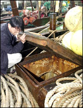 圖文:25中國偷渡客被拋尸大海 22人身份已確認(rèn) 2001年10月10日 11:00 ![]() 警方查看偷渡客藏身的漁船 中新網(wǎng)北京10月10日消息:通過對生存者的盤問,韓國警方已查明準(zhǔn)備偷渡入境而窒息死亡的25名中國人中的22人身份。 據(jù)《朝鮮日報》報道,這些人都是來自中國福建省的男性,如偷渡成功就交給蛇頭6萬~6.5萬元人民幣。 據(jù)該報昨天報道,60多名中國偷渡客躲藏在一艘韓國漁船里企圖偷渡到韓國,在途中26人因窒息而死亡,為消滅犯罪證據(jù),韓國偷渡集團(tuán)竟將死者的尸體全部扔進(jìn)了海里。其余的34人在麗水市附近的大境島登陸上岸,并于當(dāng)天全被拘捕。 初步判斷,這些偷渡客是因?yàn)槎阍跊]有換氣口的儲魚艙里而窒息死亡的。據(jù)介紹,這些儲魚艙高3米,只有3米大小的地方連站直都很困難。 韓國警方目前正就整個案情進(jìn)行調(diào)查。