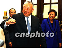 民調顯示施政報告公布后董建華支持度上升 2001年10月11日 21:07 ![]() 香港特區(qū)行政長官董建華,10月11日在香港立法會就他昨日所做的2001年施政報告接受議員提問。中新社記者 任晨鳴 攝 ![]() 香港立法會主席范徐麗泰,10月11日陪同行政長官董建華到立法會回答議員關于施政報告的提問。中新社記者 任晨鳴 攝