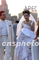 圖:APEC開幕前夕上海掀起結(jié)婚潮 2001年10月13日 14:53 ![]() 一對年輕夫婦十三日在上海濱江路拍攝結(jié)婚照,背景的高樓上豎立著APEC標記。亞太經(jīng)合組織高峰會開幕在即,上海迎來青年人的結(jié)婚高峰。中新社記者 毛建軍 攝 |