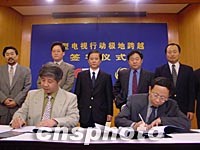 從南極到北極:鳳凰、央視首次攜手看世界(附圖) 2001年10月13日 16:25 ![]() 鳳凰衛(wèi)視和中國中央電視臺將首次聯(lián)手,完成這次從南到北的"極地大跨越"。圖為鳳凰衛(wèi)視節(jié)目副總裁鐘大年、中視傳媒股份有限公司董事長吳達審分別代表雙方在合約上簽字。