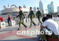 圖:上海博物館廣場警隊(duì)巡邏 2001年10月16日 11:36 ![]() 在上海博物館廣場,一隊(duì)武裝警察上海博物館巡邏而過,路旁一對小情侶正在熱戀之中。APEC會(huì)議的嘉賓十月中旬將在這里參觀中國文物。中新社記者 賈國榮 攝 |
