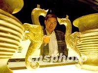 圖:為APEC展示青銅文物 2001年10月16日 15:43 ![]() 上海博物館周志聰副研究員準(zhǔn)備好為十月APEC會(huì)議的嘉賓介紹中國(guó)文物,這對(duì)兩千多年前在安徽鑄造的龍手青銅器,借鑒了海馬的形象。中新社記者 賈國(guó)榮 攝 |