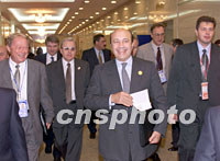 圖:俄羅斯外長出席APEC雙部長會議 2001年10月17日 14:03 ![]() 俄羅斯外交部長伊戈?duì)?#183;伊萬諾夫十七日在上海國際會議中心出席亞太經(jīng)合組織(APEC)雙部長會議。中新社記者 毛建軍 攝 |