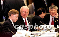 圖:美國和越南的代表在亞太經(jīng)合組織部長級會議上 2001年10月17日 18:35 ![]() 10月17日,2001年亞太經(jīng)合組織(APEC)部長級會議在上海國際會議中心開幕。這是美國和越南的代表在會前各自進(jìn)行交談。中新社圖 |