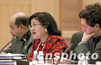 圖文:馬來(lái)西亞官員稱美國(guó)靠武力無(wú)法解決恐怖主義 2001年10月17日 18:44 ![]() 10月17日,2001年亞太經(jīng)合組織(APEC)部長(zhǎng)級(jí)會(huì)議在上海國(guó)際會(huì)議中心開幕。這是馬來(lái)西亞貿(mào)工部長(zhǎng)拉菲達(dá)·阿齊茲在會(huì)上發(fā)言。中新社圖