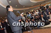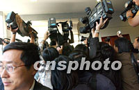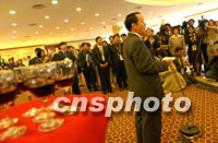 ![]() 2001年APEC會議籌委會秘書長、中國外交部副部長王光亞十七日在上海國際新聞中心舉行招待酒會,并在會上向參加會議報道的中外記者致感謝詞。中新社記者 王瑤 攝