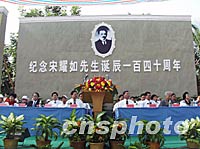 ![]() 紀念宋耀如誕辰140周年活動在海南文昌舉行。海南各界與來自孫中山、宋慶齡紀念地代表及美國、馬來西亞、泰國的海外華人代表、臺灣客人等共二千多人在此紀念宋耀如誕辰140周年,并舉行孫中山、宋耀如塑像揭幕儀式。中新社圖 王辛莉 攝 ![]() 17日下午,孫中山和平教育基金會主席、孫中山孫女孫穗芳出席在海南文昌舉行的紀念宋耀如誕辰一百四十周年活動。圖為孫穗芳在紀念大會上致辭。中新社圖 王辛莉 攝