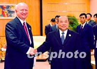 圖:中美商務高官會談 2001年10月18日 12:51 ![]() 中國對外經(jīng)濟貿(mào)易部石廣生部長十八日上午在上海國際會議中心與美國商務部副部長博德曼會談。中新社記者賈國榮攝 |