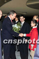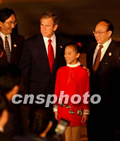 ![]() 10月18日,美國(guó)總統(tǒng)布什抵達(dá)上海浦東國(guó)際機(jī)場(chǎng),前來(lái)參加亞太經(jīng)合組織領(lǐng)導(dǎo)人非正式會(huì)議。這是美國(guó)總統(tǒng)布什下飛機(jī)后接受獻(xiàn)花。中新社圖 ![]() 美國(guó)總統(tǒng)布什乘坐空軍一號(hào)專(zhuān)機(jī)十八日晚飛抵上海浦東國(guó)際機(jī)場(chǎng),與向他獻(xiàn)花的上海小故娘合影留念。