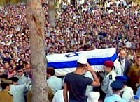 中新網(wǎng)北京10月19日消息:耶路撒冷訊,以色列18日為遇刺死亡的旅游部長雷哈瓦姆·澤維舉行國葬。 國葬儀式于當(dāng)日下午在以色列議會廣場舉行。以總統(tǒng)卡察夫、總理沙龍、議長伯格、澤維家屬以及社會各界人士約數(shù)百人到場與澤維的遺體告別,悼念這位以政壇極右翼勢力的強硬代表。 據(jù)新華網(wǎng)的消息,澤維的靈柩將被安葬在耶路撒冷赫爾茨山公墓。 17日上午,澤維在東耶路撒冷附近下榻飯店遭解放巴勒斯坦人民陣線武裝人員襲擊,因傷勢過重醫(yī)治無效死亡。 相關(guān)報道:巴勒斯坦逮捕涉嫌暗殺以部長澤維的部分官員 相關(guān)報道:阿拉法特譴責(zé)暗殺以部長行為 下令緝拿兇手 相關(guān)報道:沙龍在以色列部長被殺后稱:一切都已改變 |