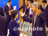 圖:ABAC第四次會議正式召開 2001年10月19日 14:42 ![]() 2001年亞太經(jīng)合組織工商咨詢理事會(ABAC)第四次會議十九日上午在上海召開,ABAC代表及其隨員179人參加了會議,是近年來參會人員最多的一次,圖為會前中國代表(左)與外國代表交談。中新社記者 王瑤 攝 |